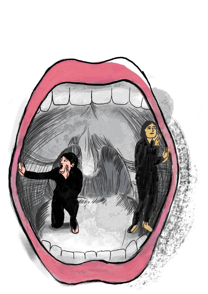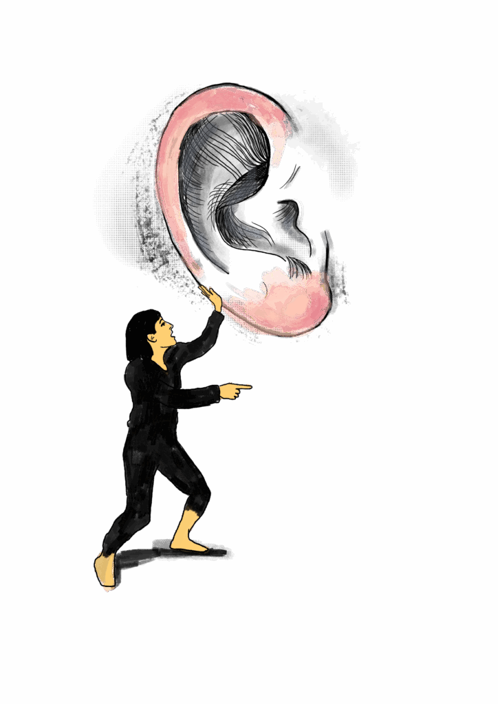 Für die Ausgabe STIMME KUNST DIALOG steuerte ich mehrere Illustrationen bei: Mund und Ohr – Sprechen als Ausdruck und Hören als Eindruck. Sie rückt die Stimme als zentrales Thema der Theaterpädagogik in den Fokus und erinnert zugleich daran, wie wesentlich das Zuhören für jeden Dialog ist.